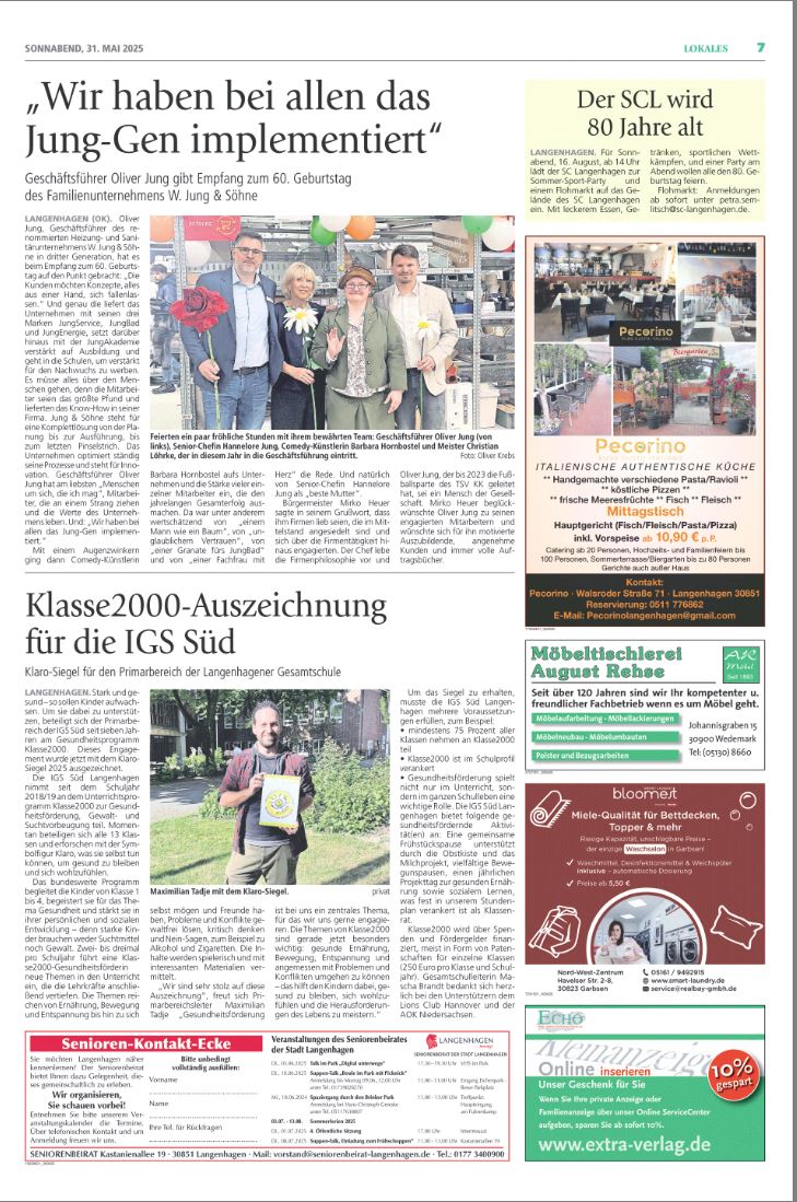 31. Mai 2025 | Zeitungsartikel zum 60-jährigen Jubiläum